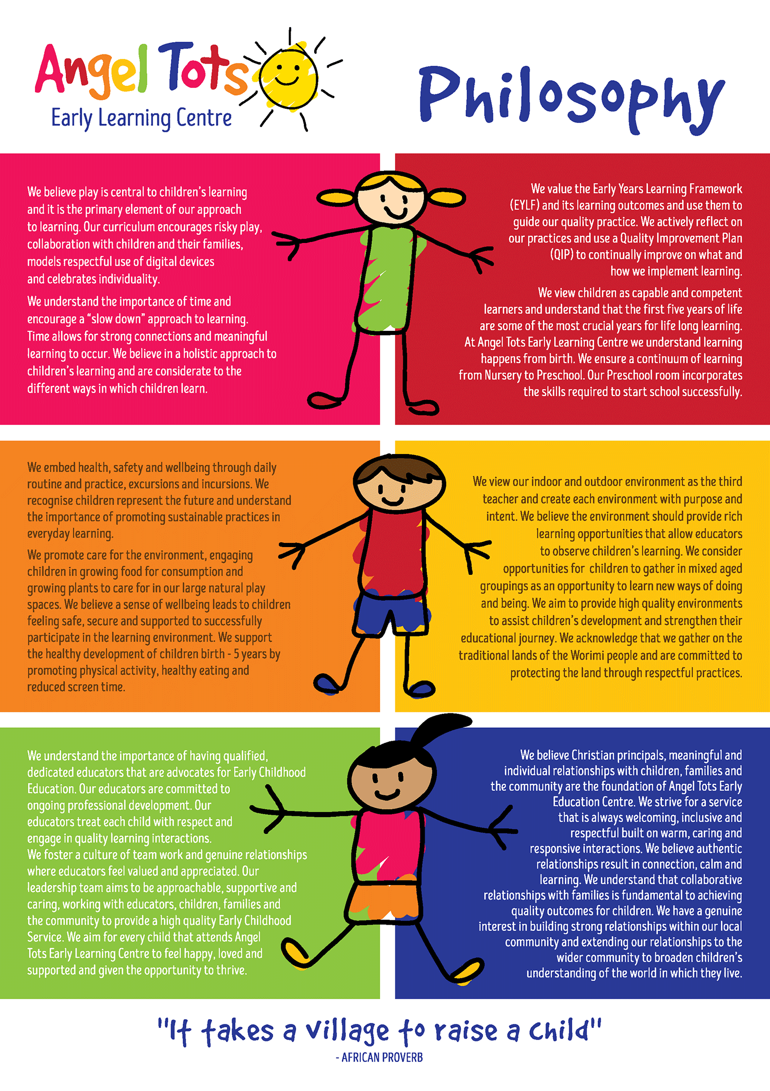 At Angel Tots Early Learning Centre, we believe that: